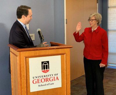 Atlanta, GA — The Supreme Court of Georgia’s Commission on Dispute Resolution has a new chair after long-serving State Court Judge Charles E. Auslander, 10th Judicial Circuit, stepped down. He was appointed to the Commission in 2006 and led as chair since 2012. Judge Auslander- a UGA “Double Dawg”- passed the gavel to Chair-Elect Judge Jane C. Barwick, Fulton County Superior Court, in a ceremony during a February 13 meeting at the University of Georgia’s Law School on his home turf: Athens.